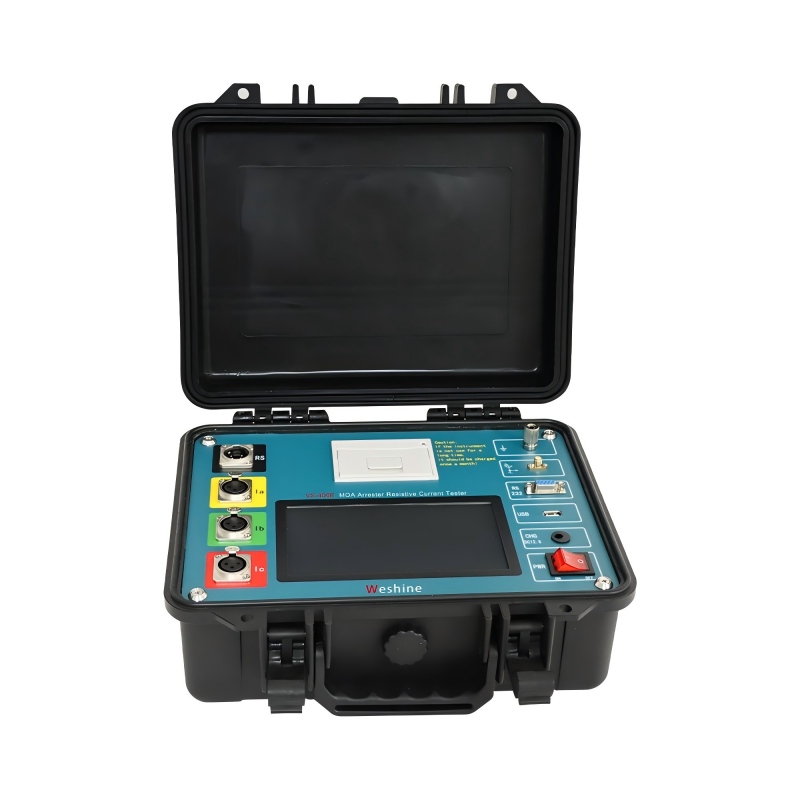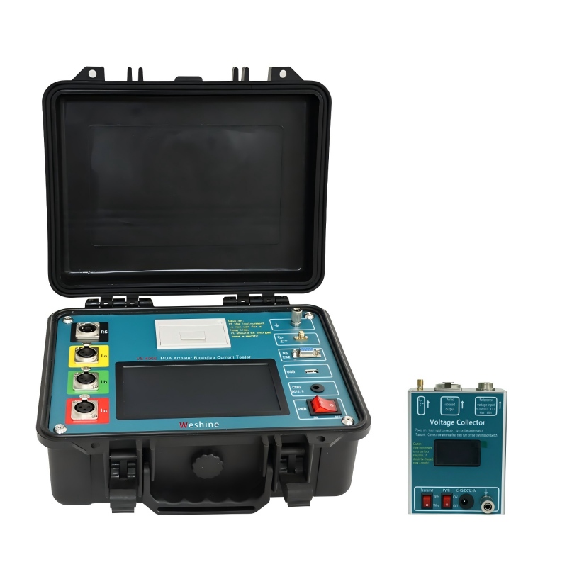 Weshine® Тестер на отпорни струи за отпорен одводник на цинк оксид за тестер на отпорна струја може да ги провери проблемите за откривање прекин на струја или напојување или одводници од цинк оксид на различни напонски нивоа и навремено откривање на опасните дефекти како што се придушување на внатрешната изолација и стареење на вентилот.